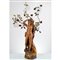 Lume a tre luci con scultura in schiuma di gesso raffigurante "Nudo femminile" alla base e bracci in ferro laccato e decorato a motivo floreale con bocce in vetro, periodo Liberty.