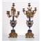 COPPIA DI CANDELABRI a sette fiamme in bronzo e metallo smaltato.