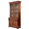 Libreria in legno di mogano e piuma di mogano a due ante a vetri nella parte sovrastante, due ante con cassetto centrale nella parte sottostante, periodo Vittoriano.