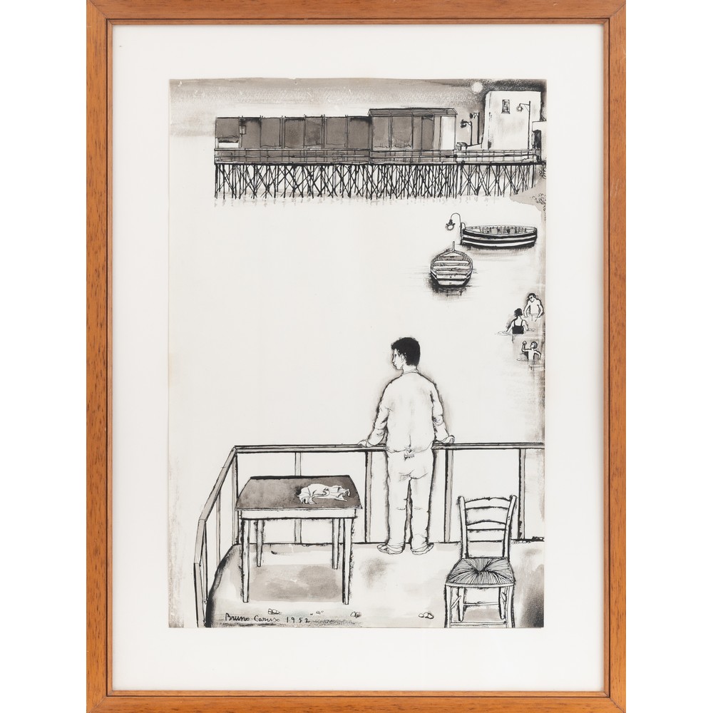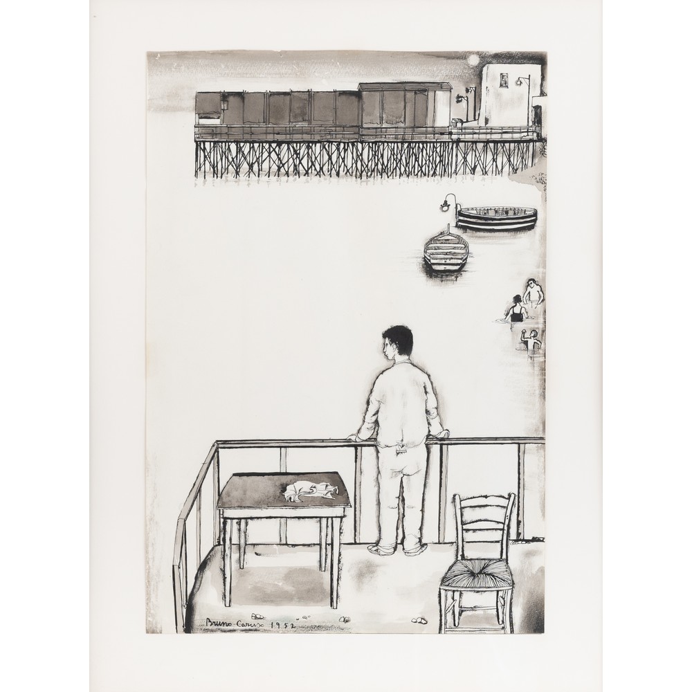 BRUNO CARUSO, Terrazza sul mare, Tecnica mista su carta