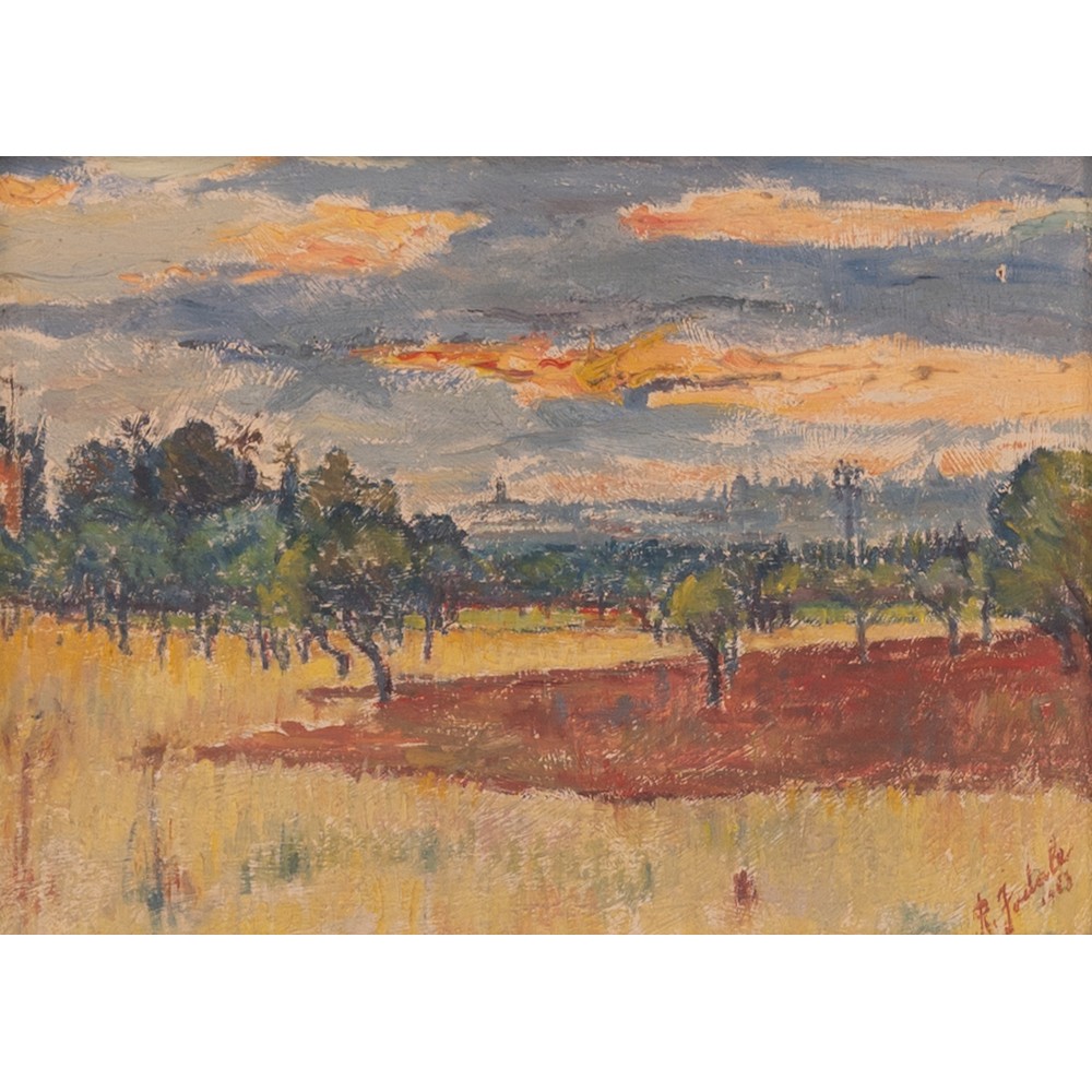 ROCCO FODALE, Paesaggio al tramonto, Olio su tavola