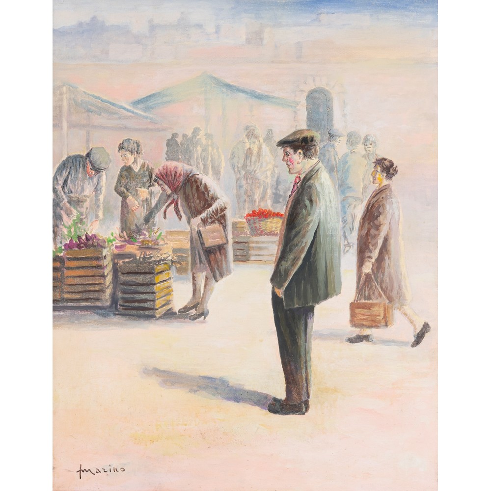 FRANCESCO MARINO, Mercatino, Olio su tela