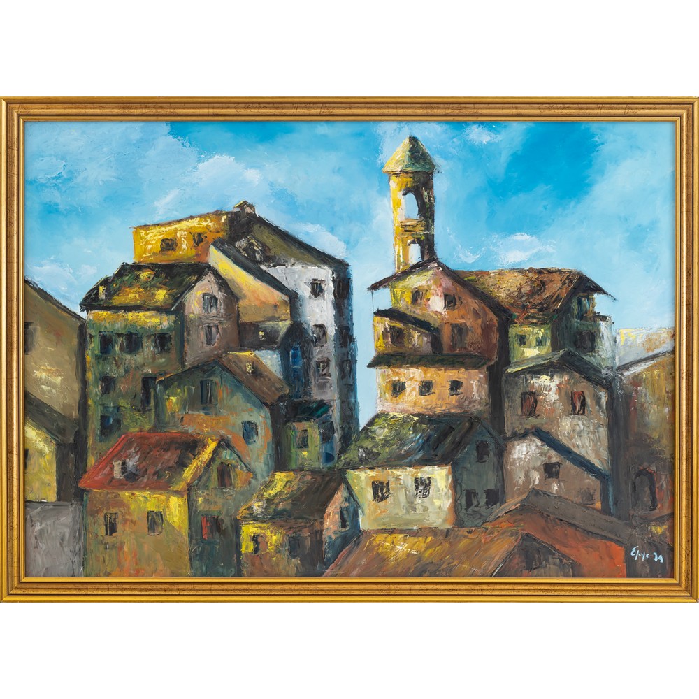 PITTORE DEL XX SECOLO, Tetti, Olio su tavola