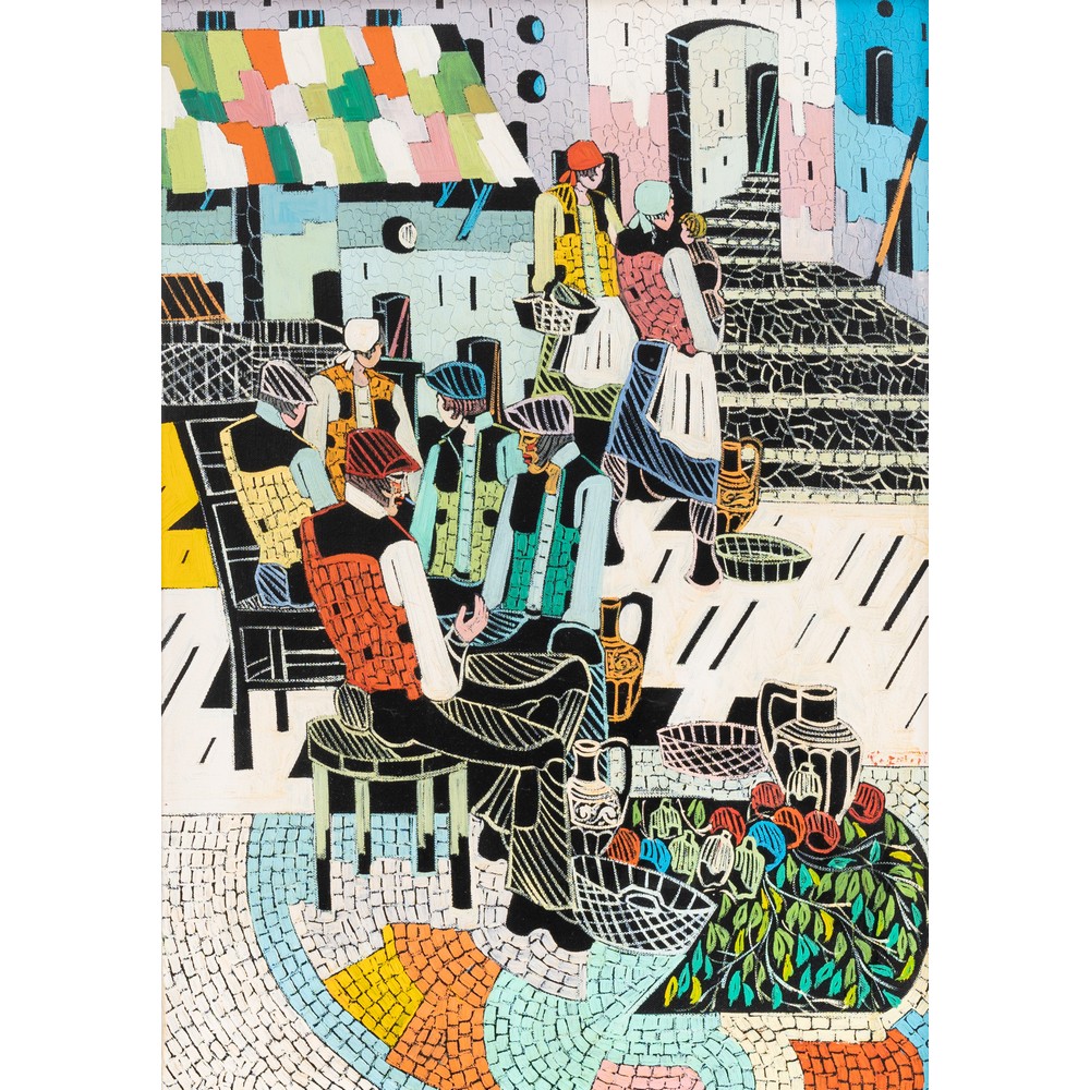 Lot 1203 | MARCELLO PIACENTINI, Cortile con personaggi, Olio su tela