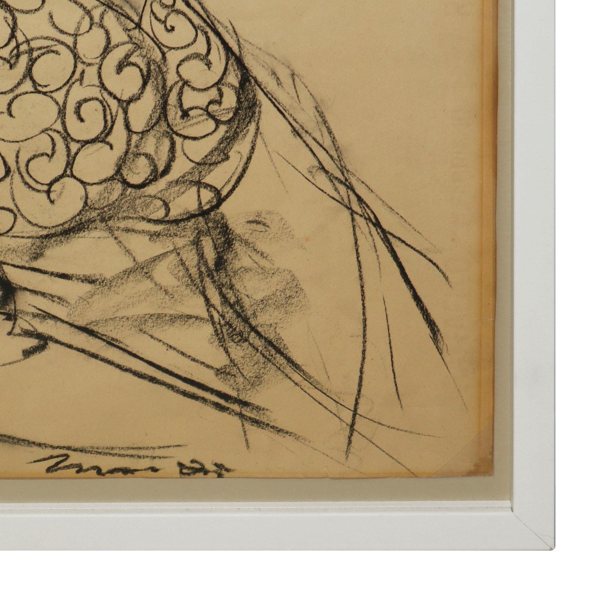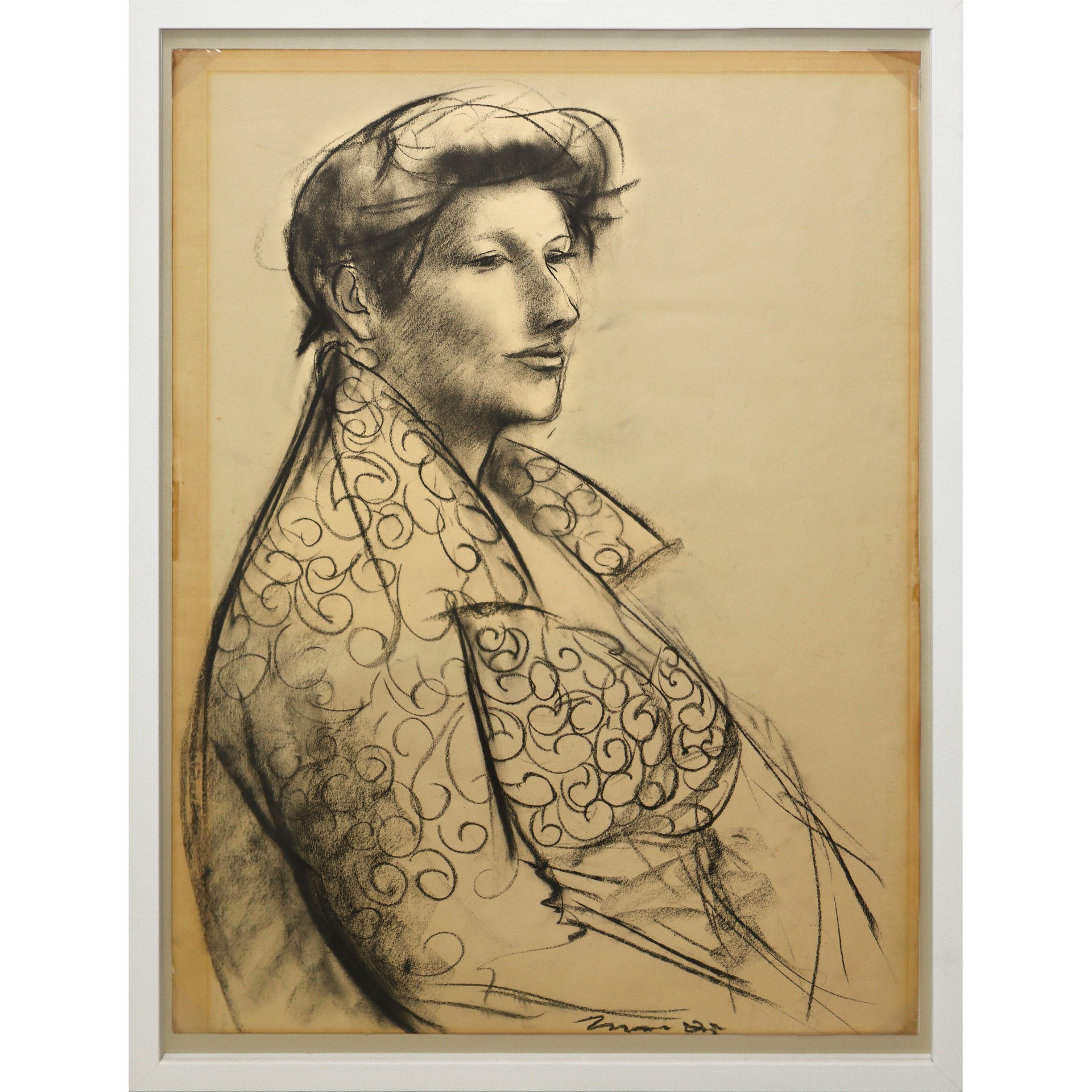 Giacomo Manzù (Bergamo 1908-Roma 1991) - Ritratto di donna, 1946 H cm 65x46 - in cornice H cm 73x53 carboncino su carta Firmato al fronte al centro