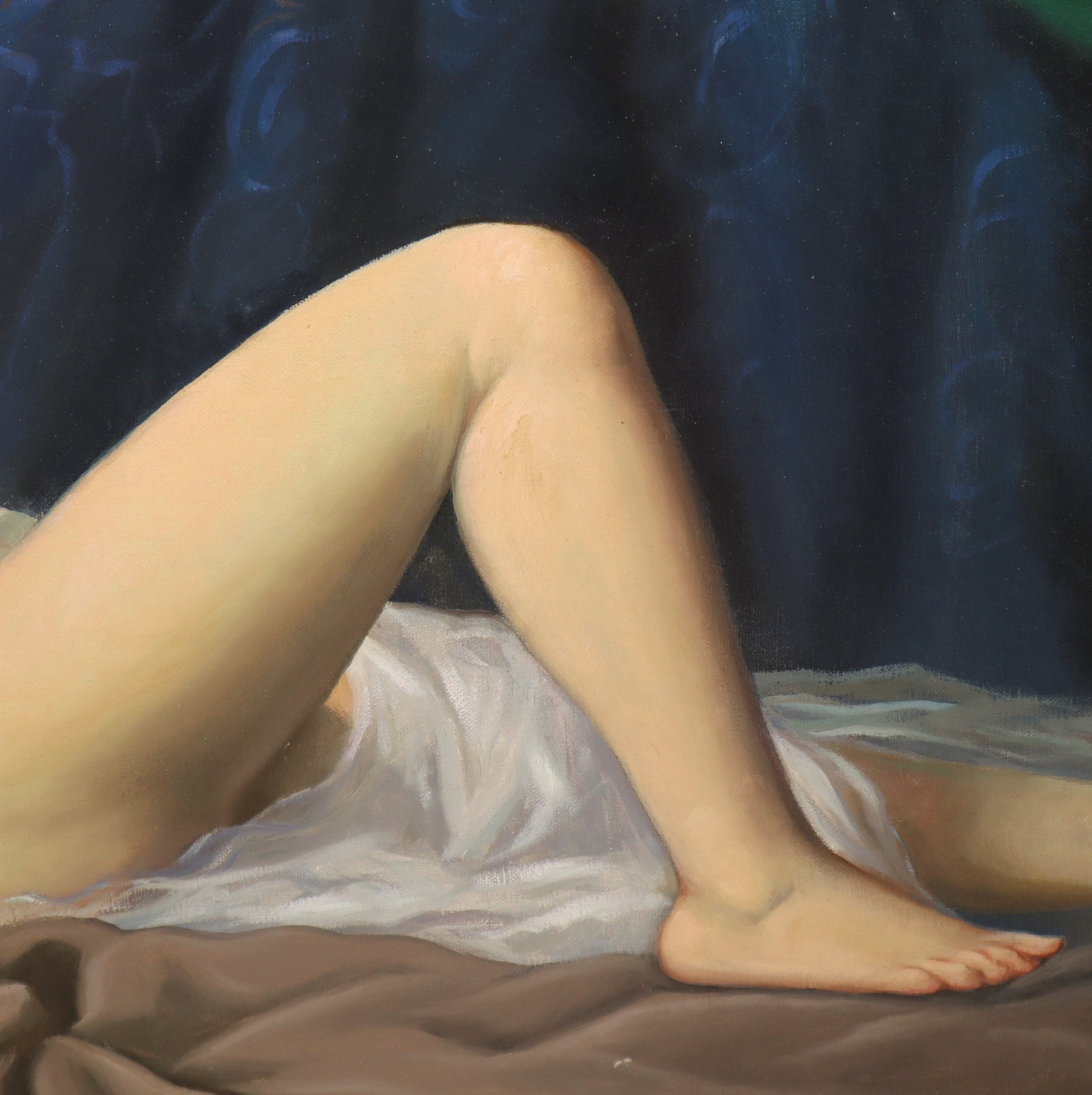 Luigi Bianchi - Nudo di donna adagiata tra tessuti policromi, primi 20° secolo