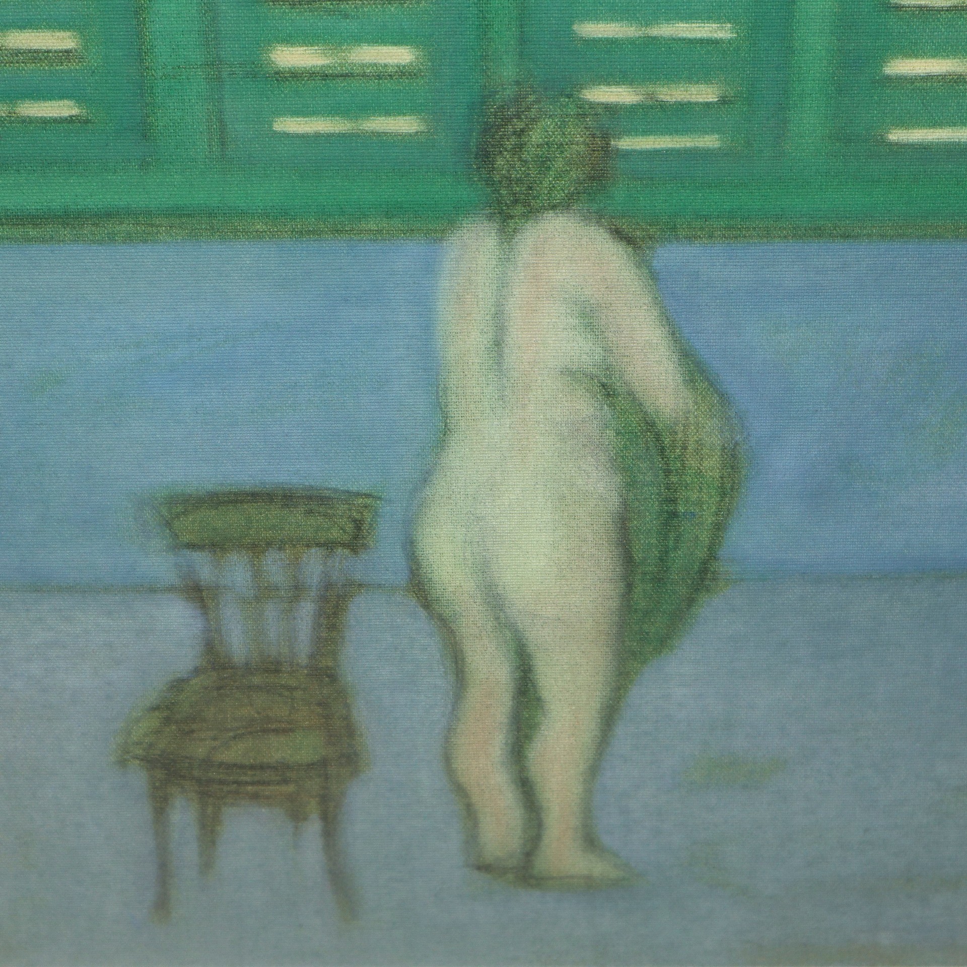 Santi Alleruzzo (Messina 1929-Villa San Giovanni 2006) - Donna in un interno H cm 54 x 54; (in cornice) cm 65 x 65 Olio su tela Firmato sul fronte in basso a sinistra. autentica su fotografia. Provenienza galleria Andre Cefaly, Catania.