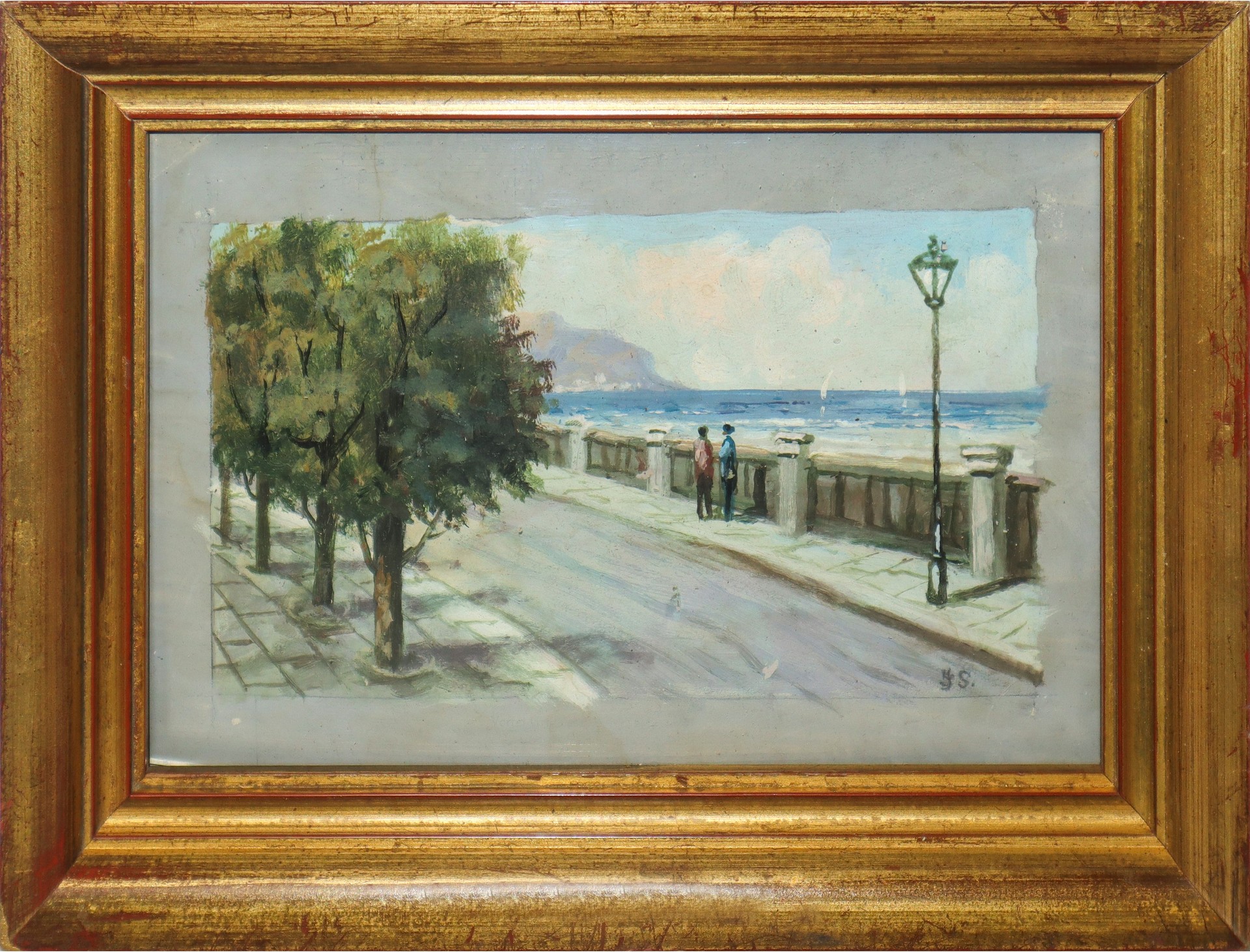Veduta della costa di Palermo con Monte Pellegrinino, primi 20° secolo H cm 11x19.7 - in cornice H cm 20x29 Acquerello su caroncino