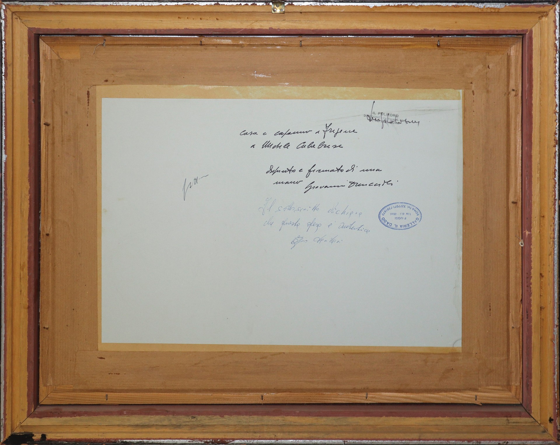 Giovanni Omiccioli (Roma 1901-1975) - Paesaggio H cm 37x50 - in cornice H cm 57x72 Olio su cartone Firmato in basso a sinistra. Sul retro firmato, timbri della Galleria Il Dado di Fiuggi e Il Poliedro di Roma.