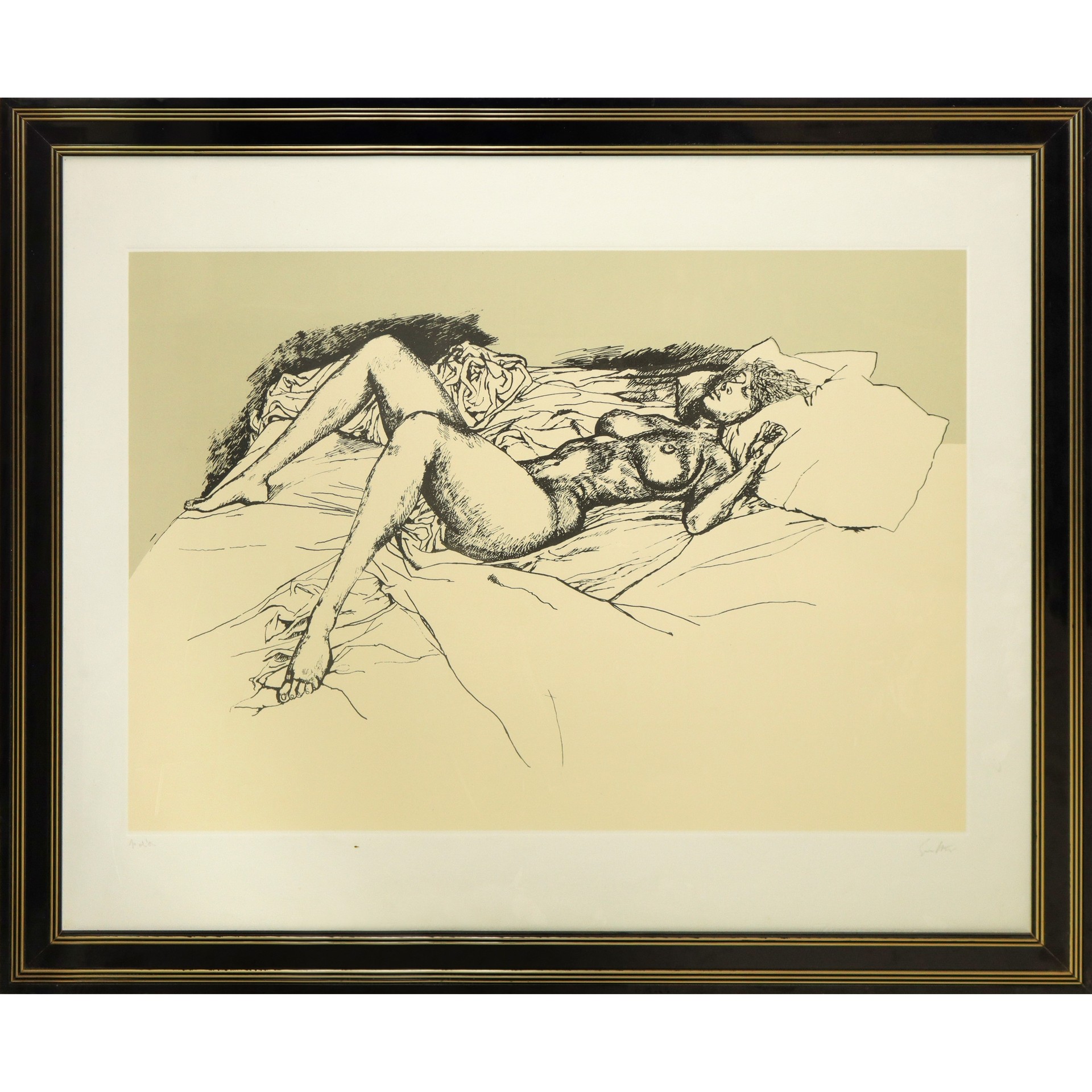 Renato Guttuso (Bagheria 1911-Roma 1987) - Nudo dormiente H cm 67x81 - in cornice H cm 76x91 Acquaforte e acquatinta Prova d'Autore. Firmato al fronte in basso a destra.
