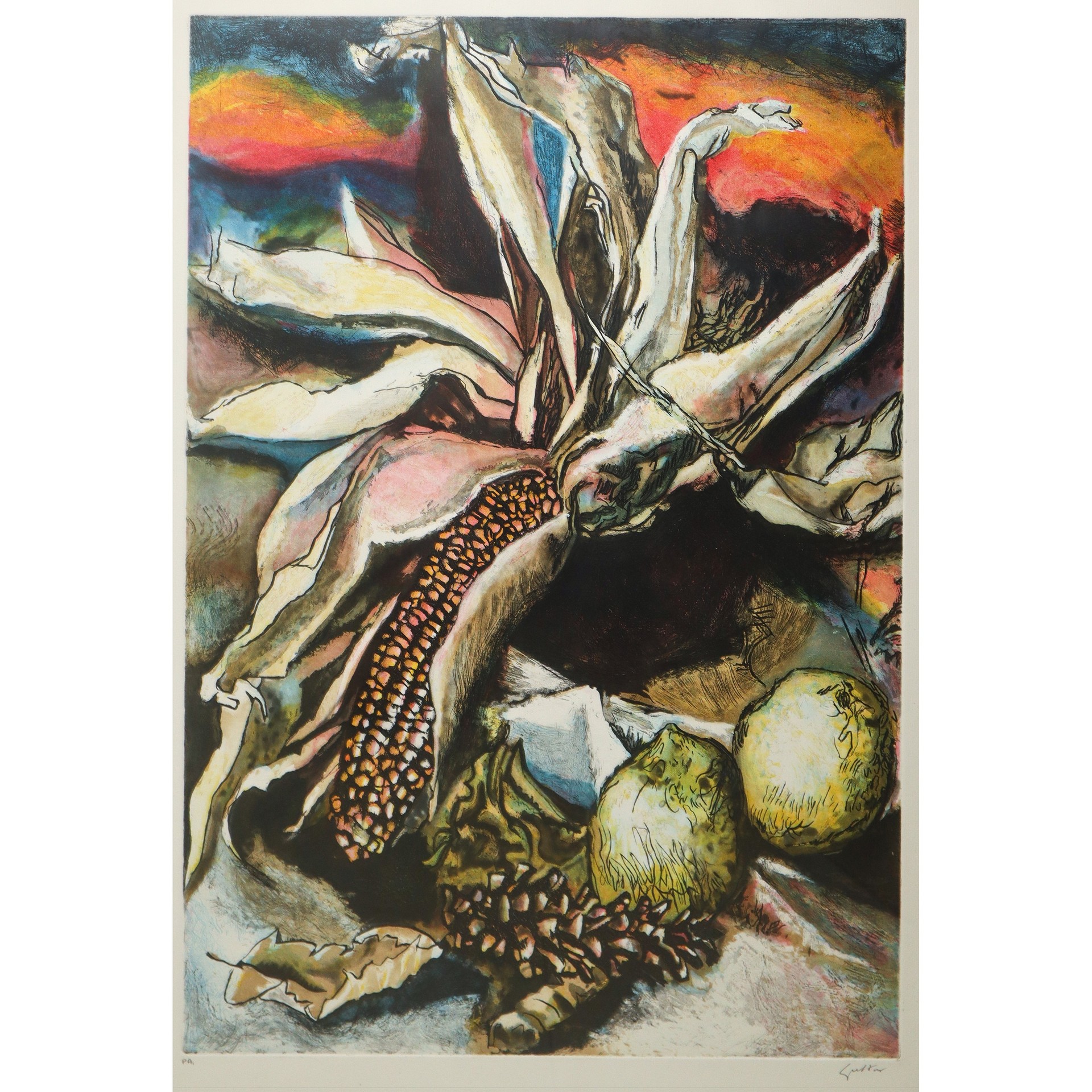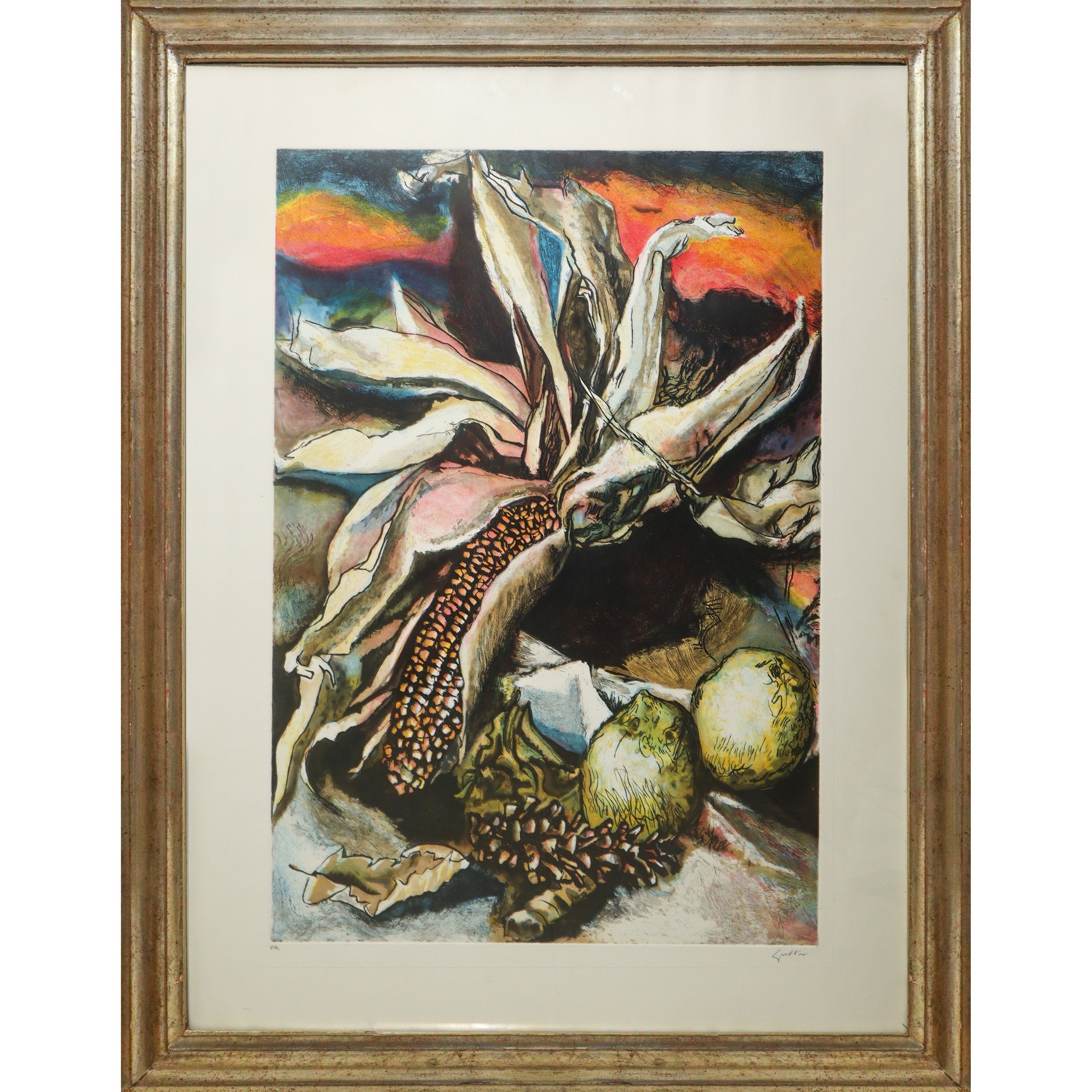 Renato Guttuso (Bagheria 1911-Roma 1987) - Pannocchia e limoni in cornice H cm 98x75 Litografia colorata Firmata in basso a destra. Prova D'Autore