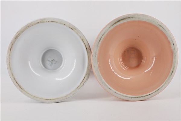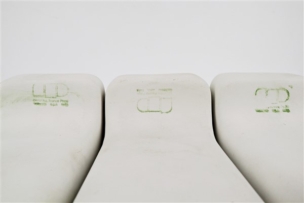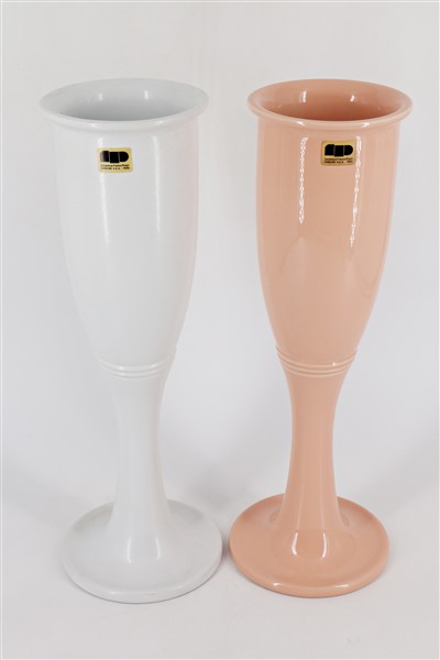 Franco Pozzi Lotto composto da due vasi in ceramica bianca e rosa e tre contenit
