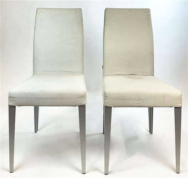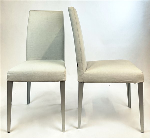 Quattro sedie con gambe in alluminio anodizzato e rivestimento in tessuto grigio sfoderabile. Produzione MDF, Italia, anni 2000. (cm 43x93x50) (lievi difetti)