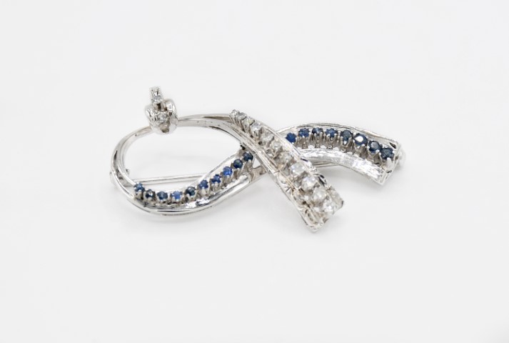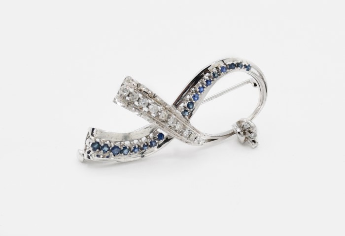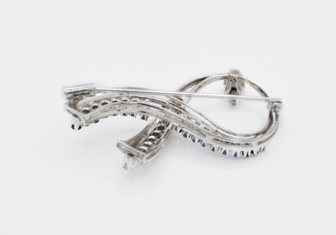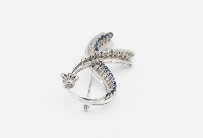 Spilla in oro bianco 750 con zaffiri e diamanti