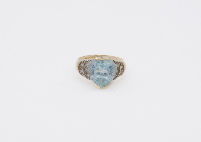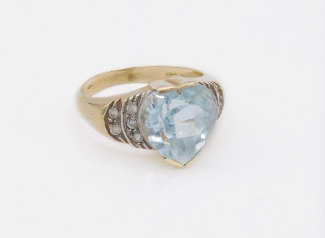 diamanti di 0,16 ct stimati, acquamarina taglio a cuore