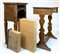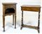 Lotto composto da un tavolino da lavoro con fronte ad un cassetto (cm 59x70x37,5) ed un comodino con fronte ad un cassetto e vano a giorno, gambe ad obelisco rovesciato (cm 44x77,5x32) (difetti)