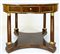 Tavolo circolare lastronato in mogano con quattro cassetti nella fascia con pro