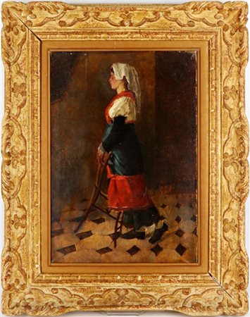 Ignoto della seconda metà del secolo XIX "In preghiera" olio su tela (cm 46x3