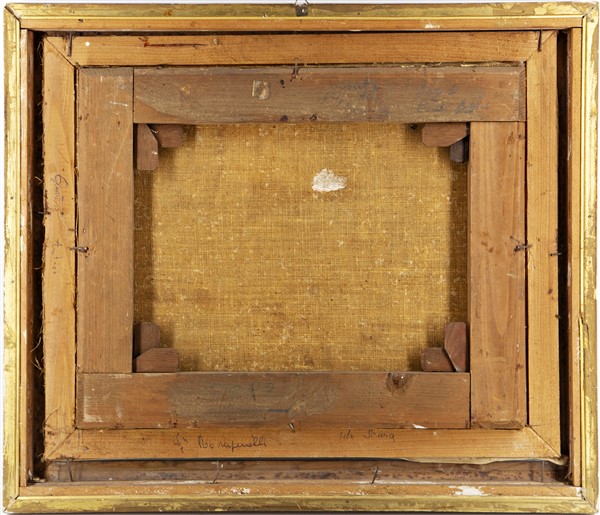 Ignoto del secolo XIX "Paesaggio fluviale con ponte" olio su tela (cm 32x40)