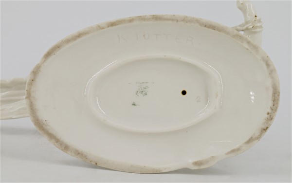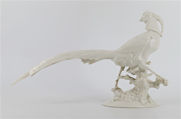 Manifattura tedesca, Karl Tutter (1883-1969) Figura di fagiano in porcellana bianca, firma sul fondo (L. cm 34) (difetti e lievi mancanze)
