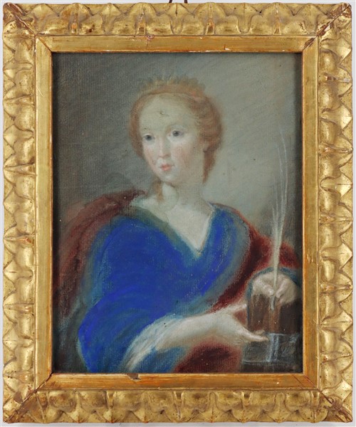 Ignoto "Santa martire" pastelli su carta applicata su tela (cm 24x19) in corni