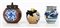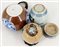 Gruppo di tre piccole giare in procellana policroma decorate con animali fantas