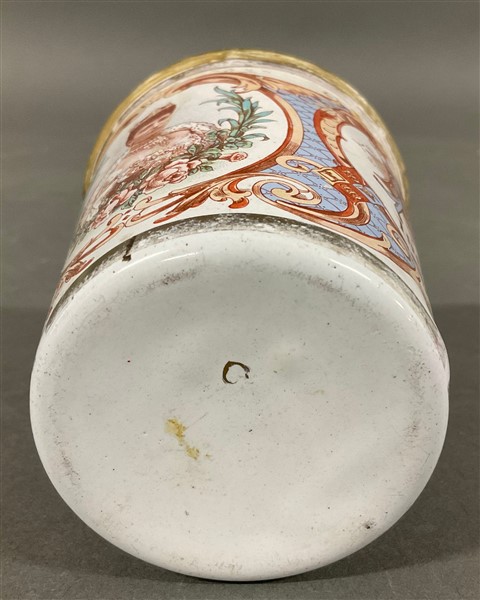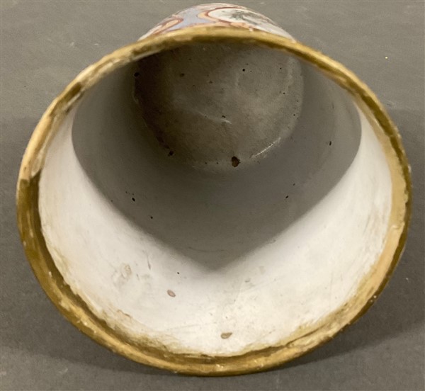Bicchiere commemorativo in metallo smaltato decorato in policromia con i profil