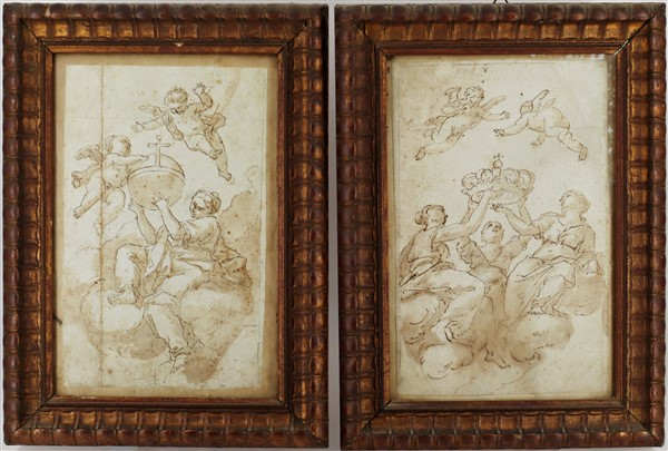 Scuola italiana del secolo XVIII Coppia di disegni raffiguranti "soggetti reli