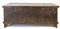 Cassapanca in noce con montanti a figure intagliate, bordure unghiate e baccell