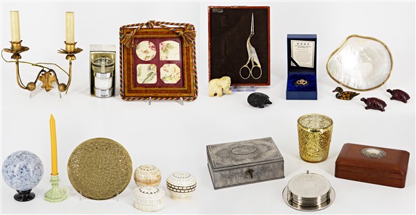 Lotto composto da numerosi oggetti diverso materiale di uso e forme varie. In un cartone (difetti)