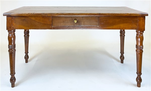 Tavolo di forma rettangolare con cassetto nella fascia e gambe tornite (cm 152x