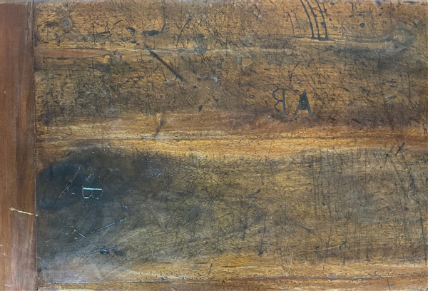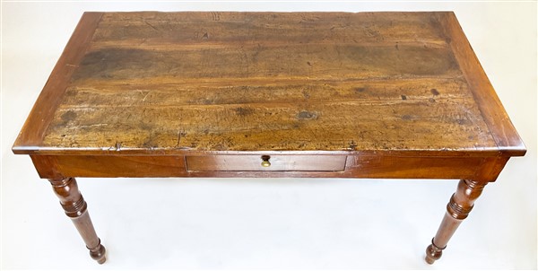 Tavolo di forma rettangolare con cassetto nella fascia e gambe tornite (cm 152x80x72) (difetti)