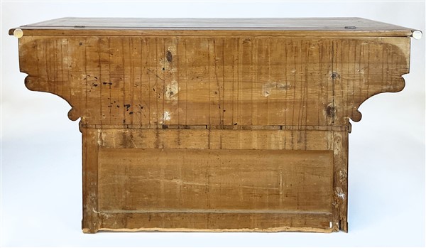 Madia in legni vari ad un cassetto e due tiretti sotto piano, fronte decorato d
