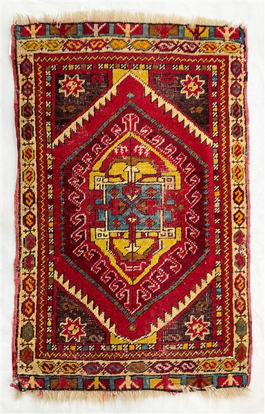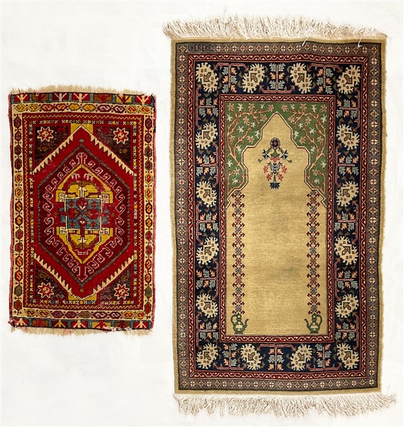 Lotto composto da due tappeti anatolici, uno preghiera (cm 133x81) e l'altro Yastik Yoruk (cm 87x56) (difetti e rapature)