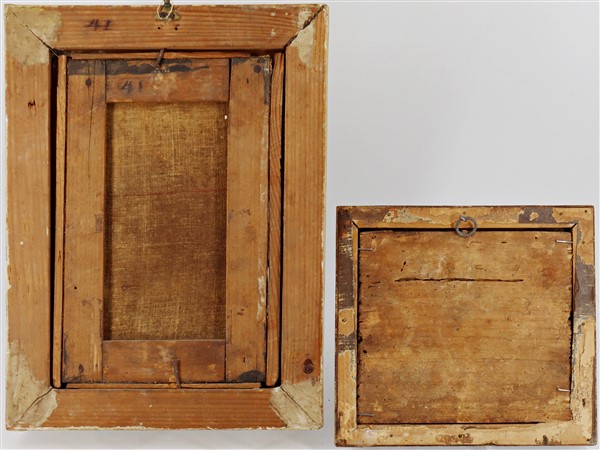 Due antichi dipinti ad olio su tela (di cui uno applicato su tavola) raffiguran