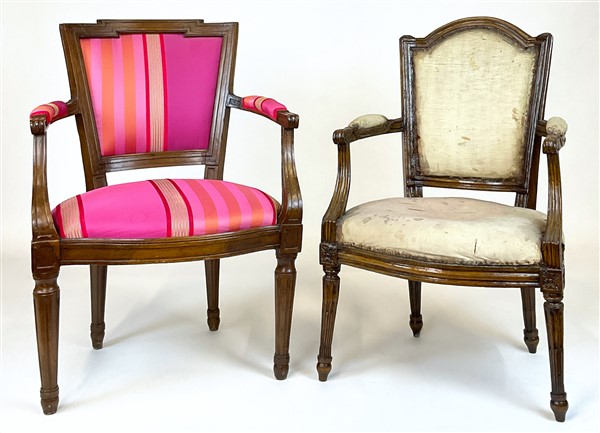 Lot 1266 | Lotto composto da due poltrone in noce con bordi e gambe scanalate, secolo XVII
