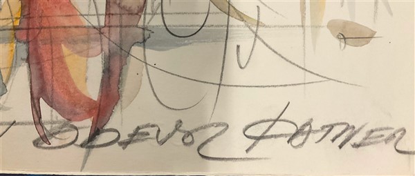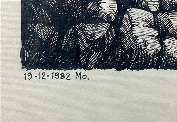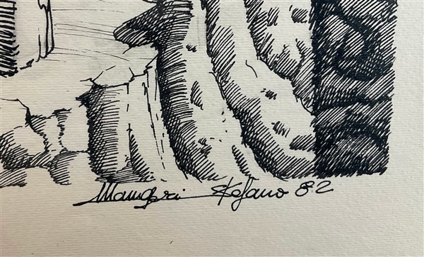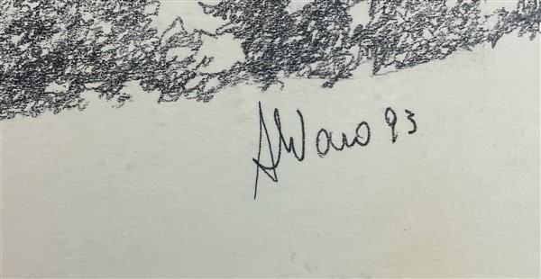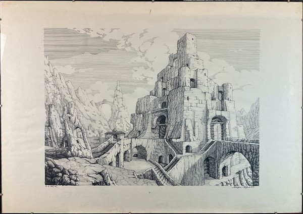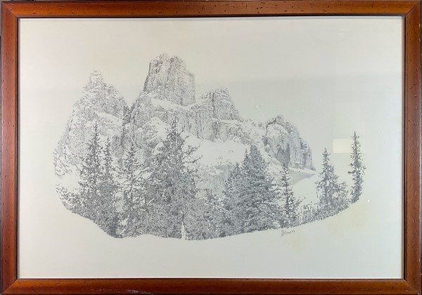 Lotto composto da un disegno a matita raffigurante paesaggio montano e firmato