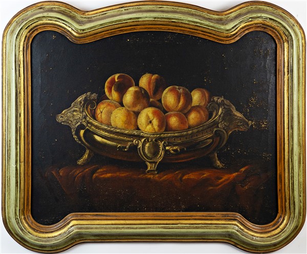 Ignoto Centrotavola con composizione di frutta, olio su tela (cm 58,5x78) In cornice (difetti)