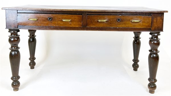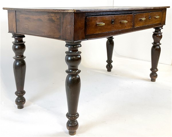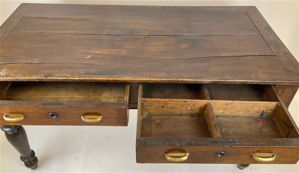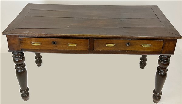 Lot 1313 | Tavolo da centro in legni vari a due cassetti nella fascia, gambe tornite (cm 1