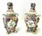 Manifattura tedesca. Coppia di vasi biansati in porcellana con coperchio e coll