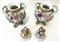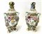 Manifattura tedesca. Coppia di vasi biansati in porcellana con coperchio e collo traforati riccamente decorati a rilievo con rami fioriti e mazzetto entro riserva, profili in oro (h cm 35) (difetti e rotture)