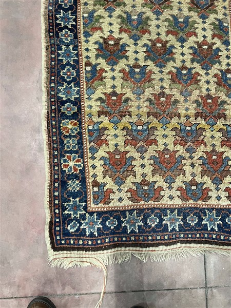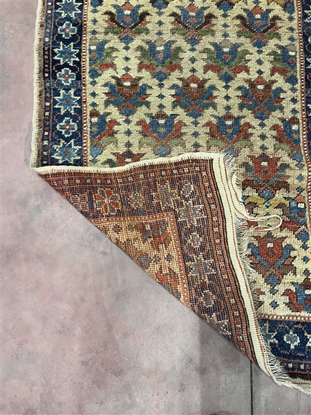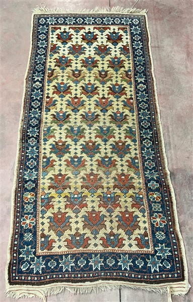 Tappeto Ushak, Anatolia, fine secolo XIX. Decoro con file di piccoli fiori in stile caucasico (cm 183x88) (difetti e rapature)
