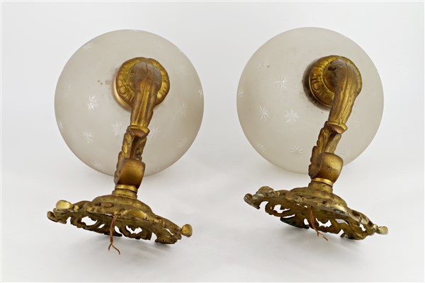 Lotto composto da una coppia di applique con bracci in metallo dorato e diffuso
