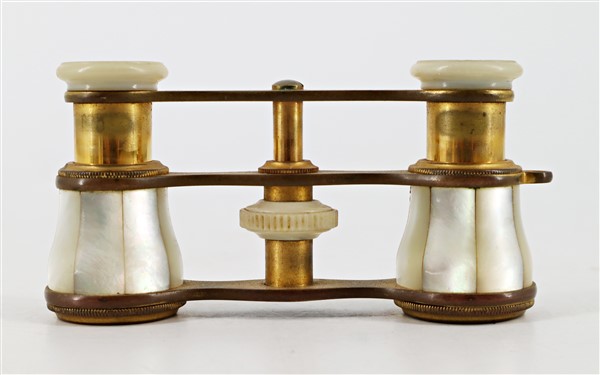 Due binocoli da teatro in madreperla e metallo (uno mancante di manico, difetti