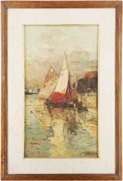 Firma indecifrata, prima metà del secolo XX "Vele" olio su tela (cm 40x25) fir