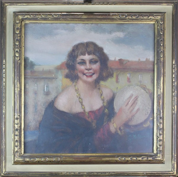 Giuseppe Maldarelli "La zingara" olio su compensato (cm 60x60) Firmato in basso