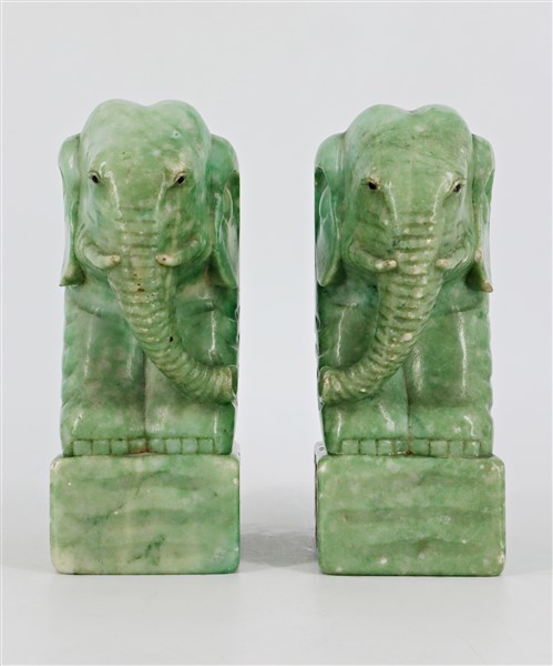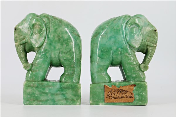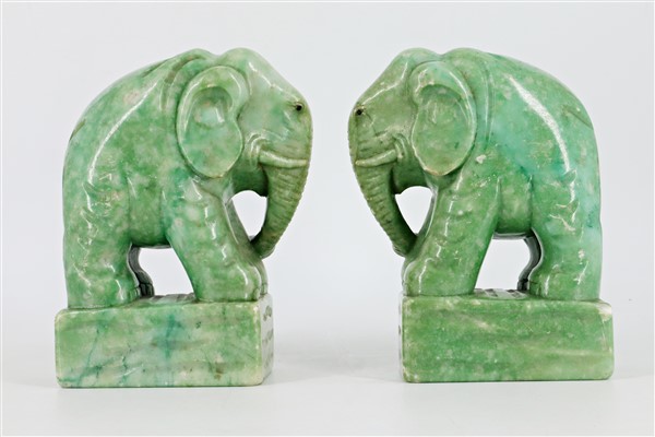 Coppia di ferma libri in pietra dura a foggia di elefanti