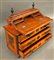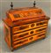 Modello di ribalta lastronato in noce e radica d'ulivo, con profili e pinnacoli ebanizzati. Scarabattolo con vani e fronte a tre cassetti. Secolo XIX (cm 46x40x19) (lievi difetti)
