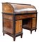 Scrittoio con ribalta a rullo in legni vari e bordure ebanizzate, fronte a due