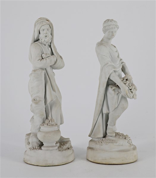 Coppia di figure in biscuit (h. cm 22) (difetti)